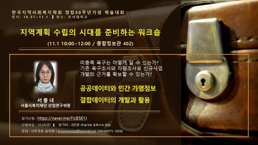한국지역사회복지학회 30주년 기념 추계학술대회 워크숍 안내